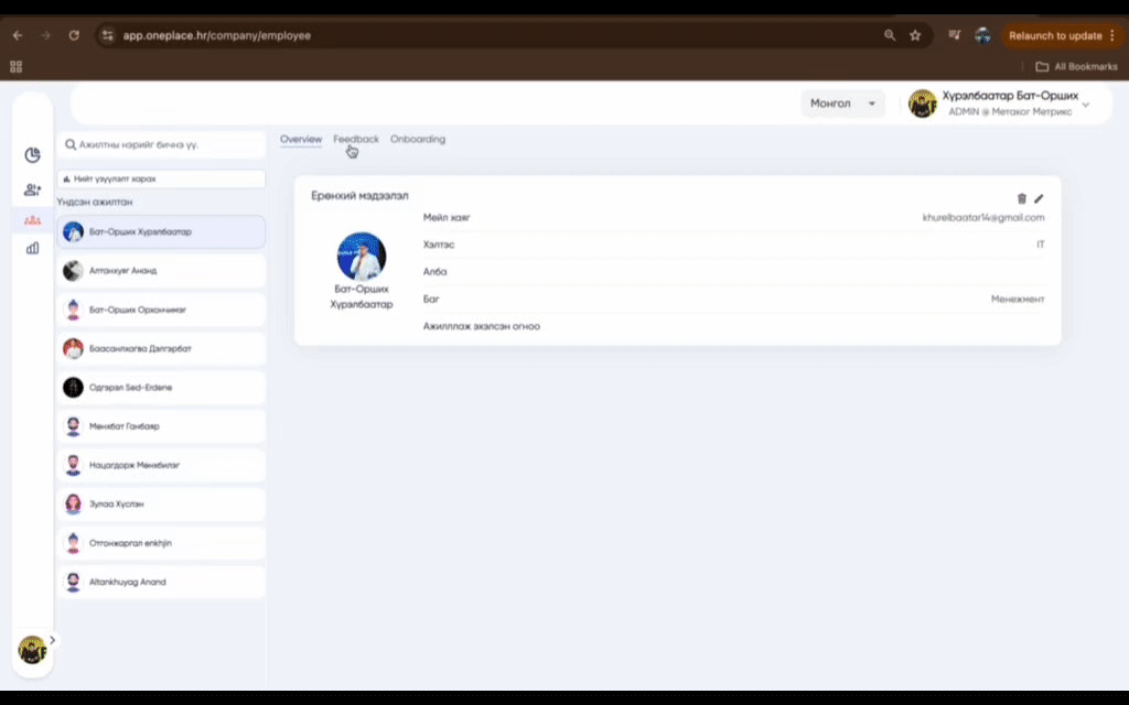 Энэхүү шинэлэг функцийн тусламжтайгаар байгууллагынхаа хамгийн нөлөө бүхий багийн гишүүдээ хялбарх харах боломжтой. ONA map-аар дамжуулан байгууллагынхаа нуугдмал манлайлагч нарыг таньж мэдэх боломжтой болж байгаа юм.
